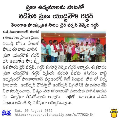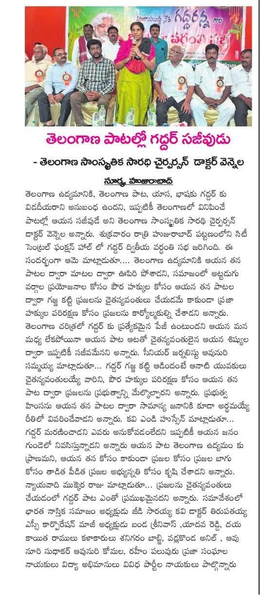 తెలంగాణ పాటల్లో గద్దర్ సజీవుడు